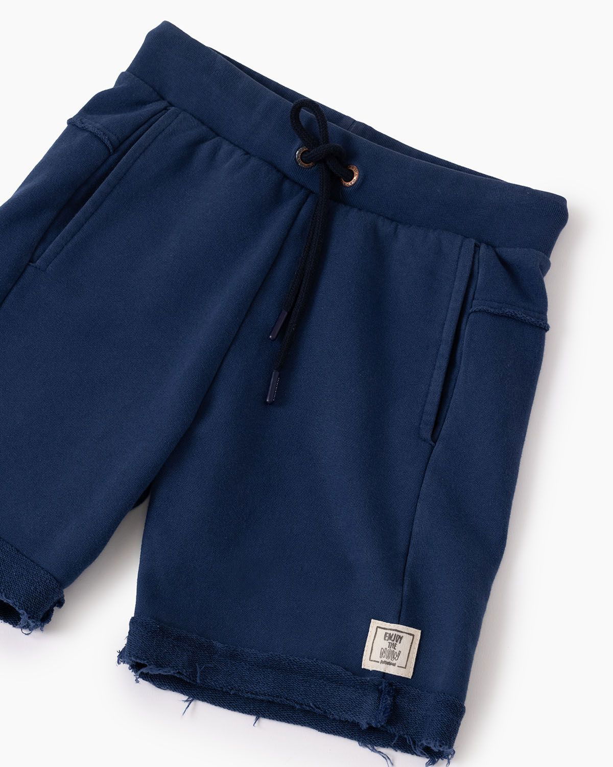 Bermuda con detalles al corte, bolsillos laterales y cintura con elástico interno y cordón. La composición es 100% algodón.