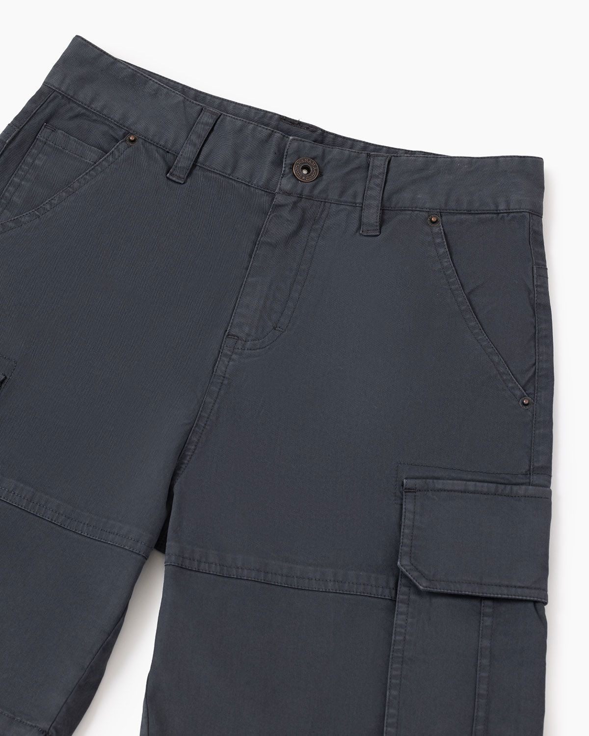 Bermuda cargo con proceso de teñido, bolsillos con tapa y calce relajado.