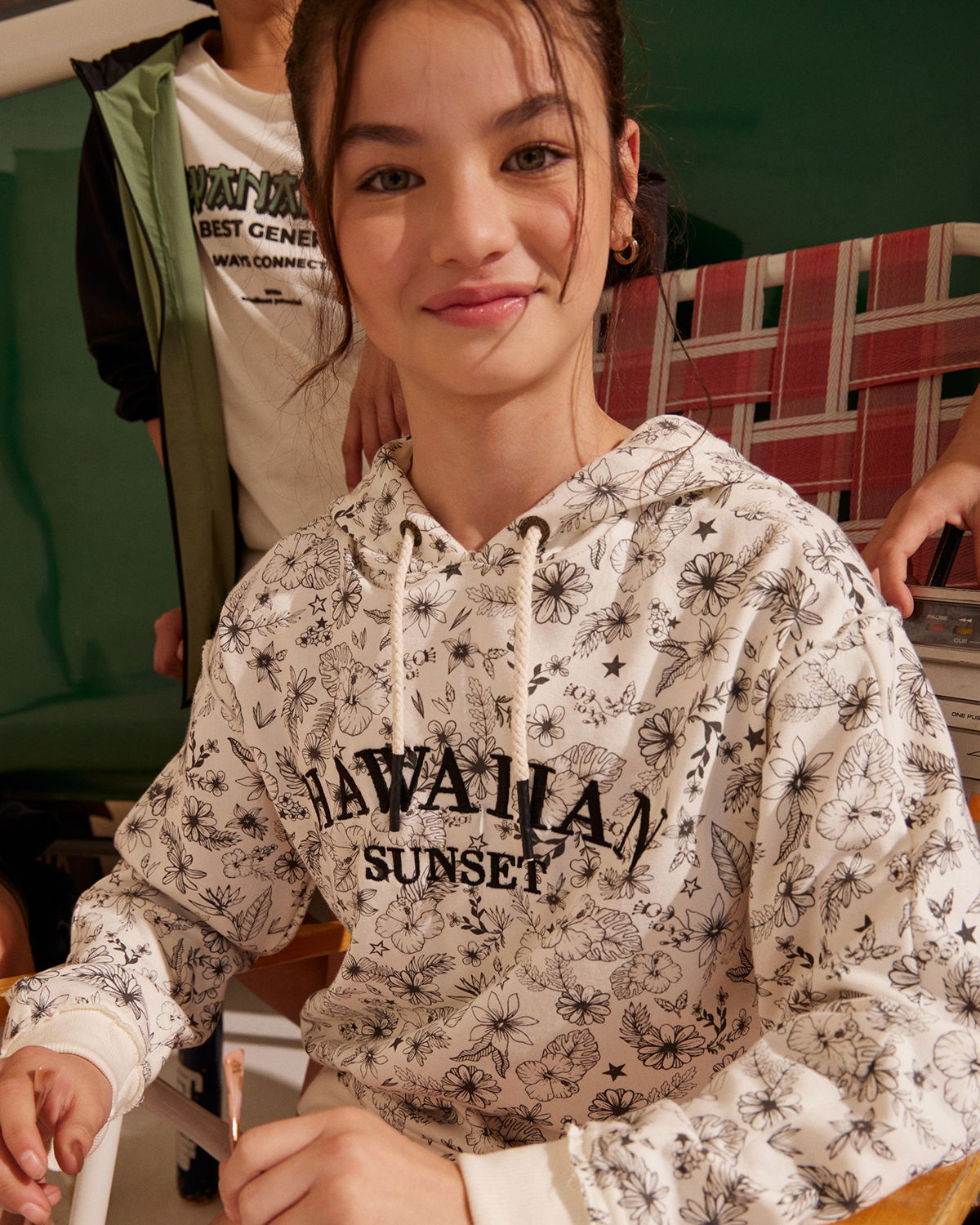 Buzo con capucha confeccionado en rustico estampado especialmente diseñado para esta colección. Posee detalles al corte y bordado en frente. Calce over. Nos encanta combinarlo con el short Chule y también con el short Wind para un total look print.