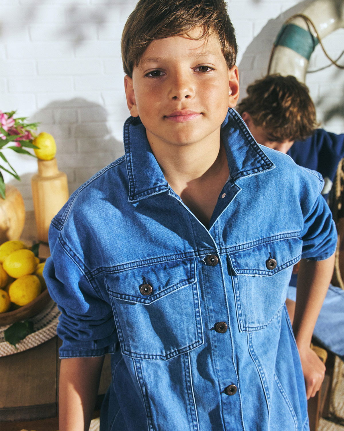 Campera de Jean oversize. Posee bolsillos con tapa en frente y bolsillos laterales en recortes. Abertura mediante botones metálicos marcarios. Calce amplio. Un ítem super cool y cómodo que completa todos tus conjuntos.