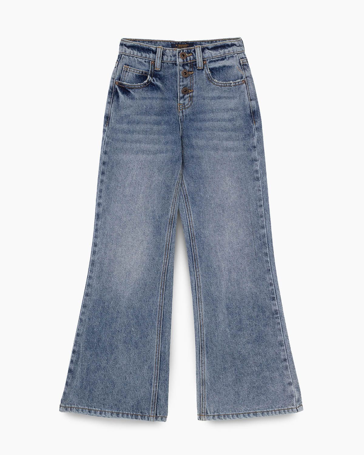 Inspiración vintage: el Denim Aileen presenta un calce flare (acampanado) con cartera de botones a la vista. Confeccionado en denim 100% algodón de alta resistencia.