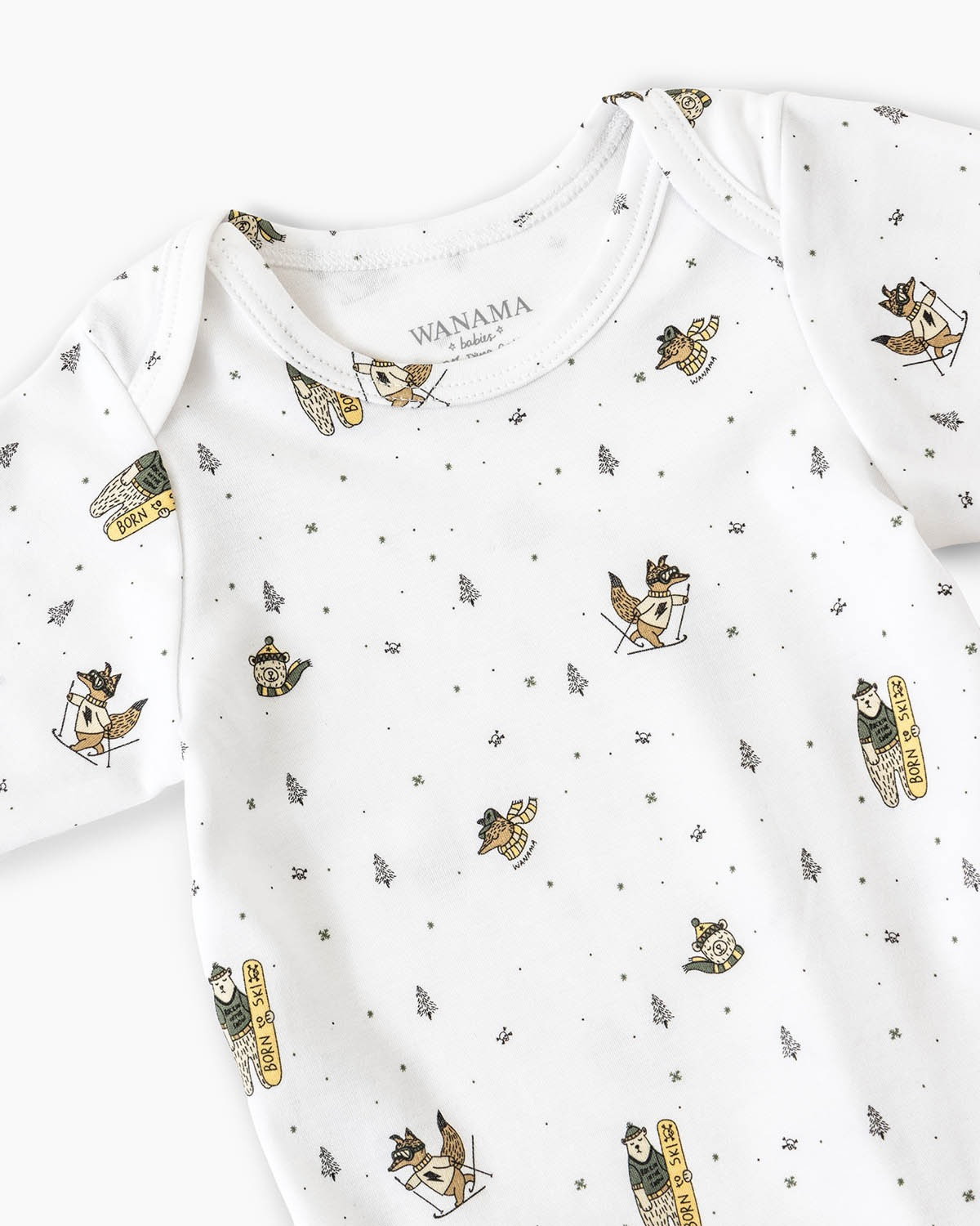 Este body de manga larga es perfecto para acompañar a tu bebé en todas sus aventuras diarias. Su diseño presenta un estampado divertido con personajes de esquiadores y elementos invernales que le dan un toque original y cool a cada look. Confeccionado con algodón pima peruano, garantiza la máxima suavidad y cuidado para la piel delicada de los más chiquitos. Su cierre con botones en la zona del pañal facilita el cambio, mientras que las mangas largas brindan abrigo y protección durante todo el día. Es ideal como primera piel o como base para armar looks completos. Podés combinarlo con babuchas o usarlo solo en casa. Perfecto para el día a día, paseos o momentos de juego, este body le da total libertad de movimiento mientras mantiene el estilo y la comodidad que caracterizan a Wanama Babies.