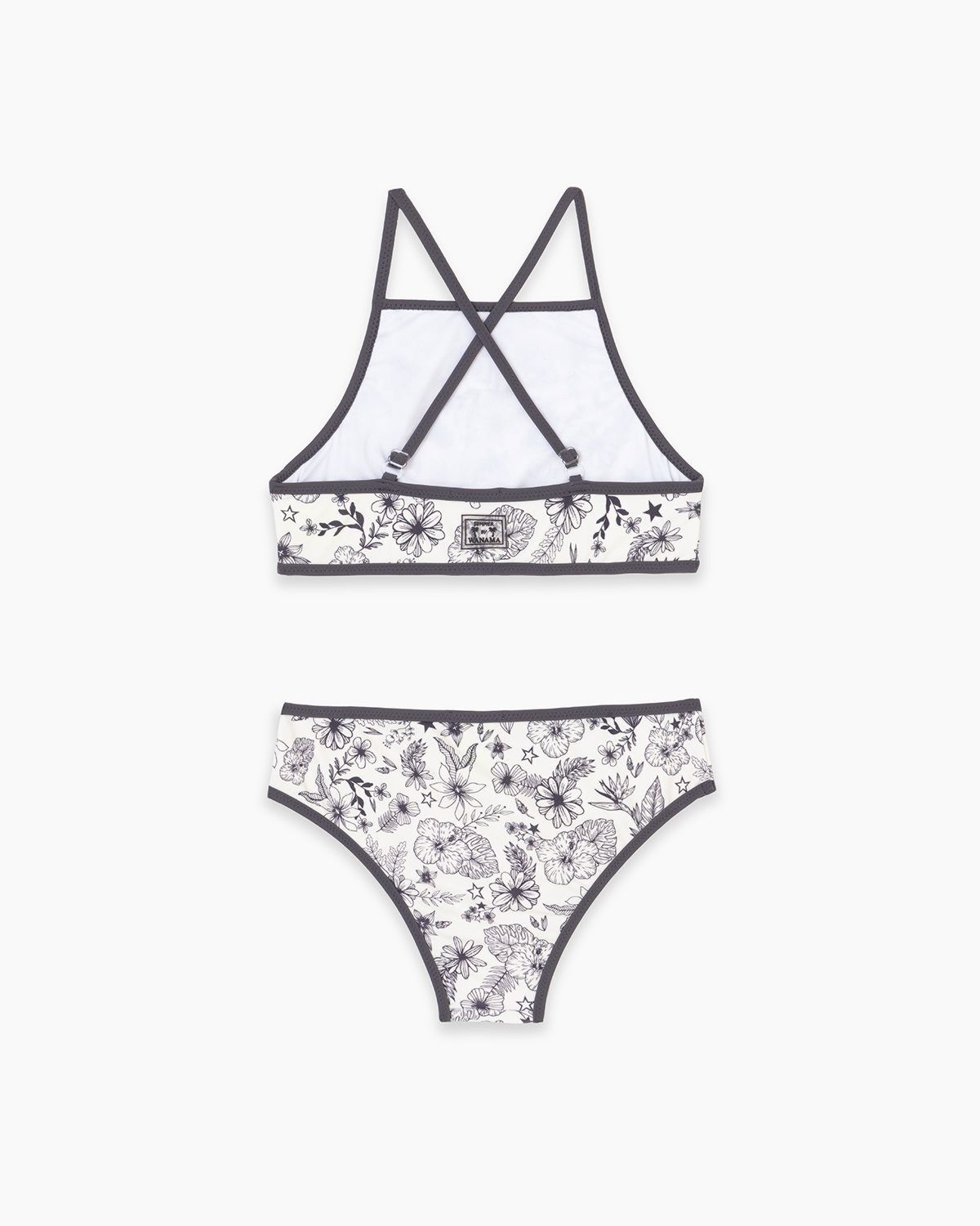 Bikini confeccionada en microfibra estampada diseño exclusivo WNM Kids, con vivos lisos. El top posee breteles regulables cruzados. Bombacha haciendo match. Ideal para pasar el verano esta temporada.