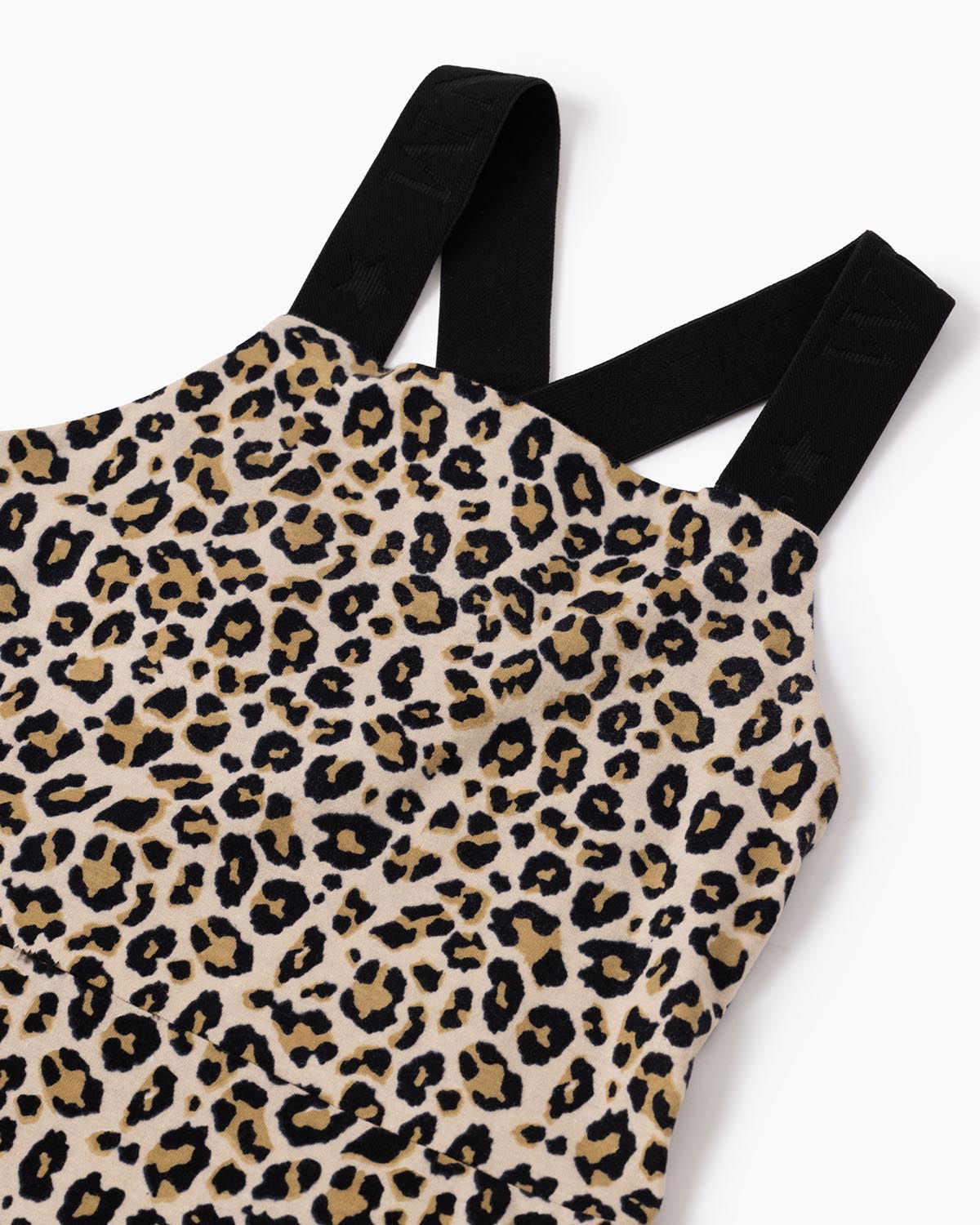 Confeccionado en jersey 100% algodón. Se destaca por su estampado exclusivo. Tiene un escote cuadrado, breteles elásticos y una espalda cruzada. Su calce es fit en la parte superior y evasé en la falda.
