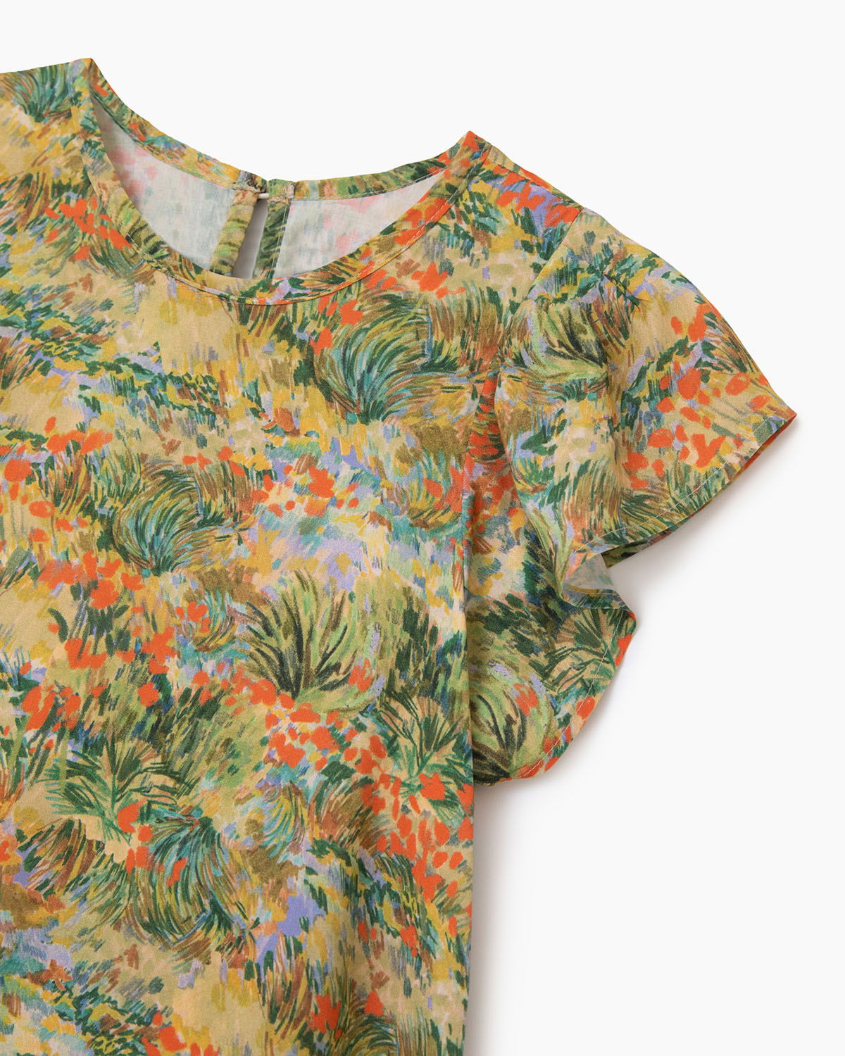 - Cuello redondo con espalda con escote gota que cierra mediante ojal elástico y botón.